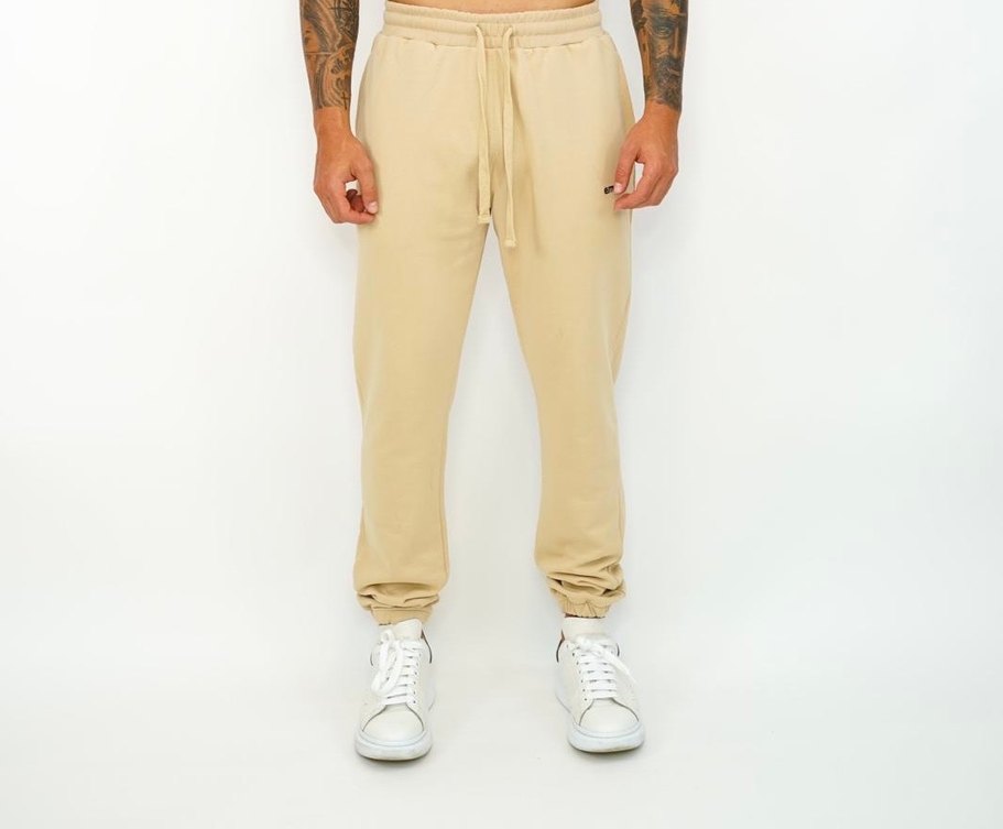 Emolos ihracat ürünü Açık bej renkte bol kesim ve normal boyda erkek eşofman altı. Lastikli bel ve bağcık detaylarıyla rahatlık sağlar. Spor ve gündelik kullanıma uygun.