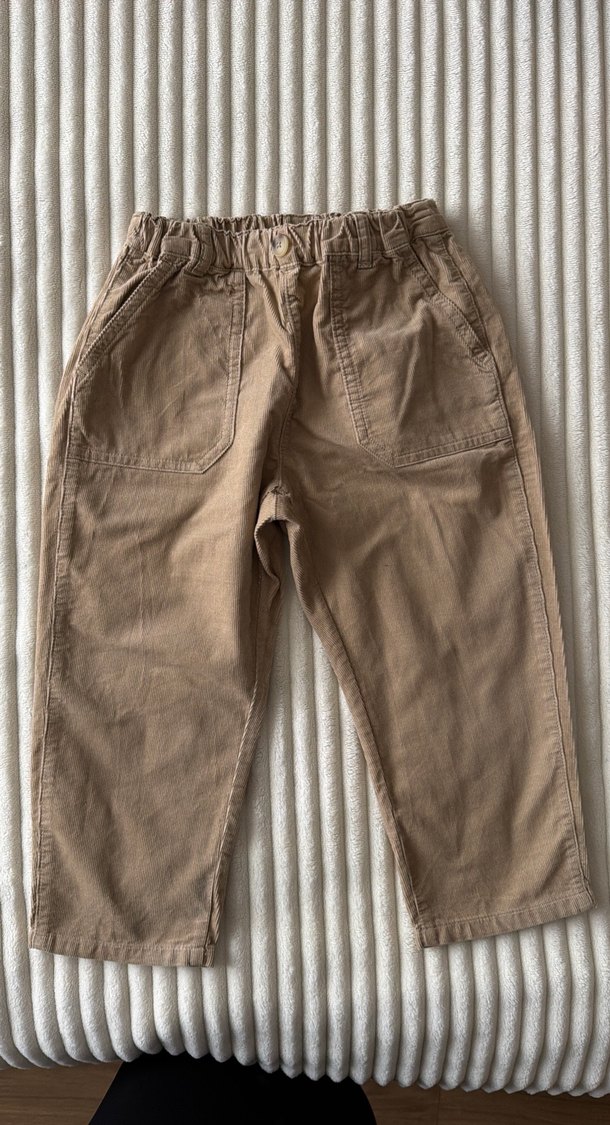 Erkek çocuklar için bej ince kadife dokulu pantolon, rahat kesim, bel düğmeli ayarlamalı. Yurtdışından alındı unıqlo marka