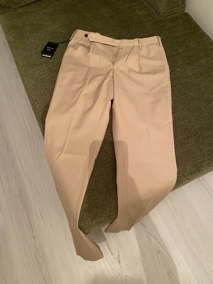 Bej erkek Kemerli Kumaş Pantolon
