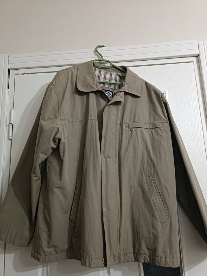 Bej renkli erkek keten ceket, rahat kesim ve uzun kolludur. Düğmeli ön kısmı ve çıtçıtlı yakası vardır, günlük rahat kullanıma uygundur.