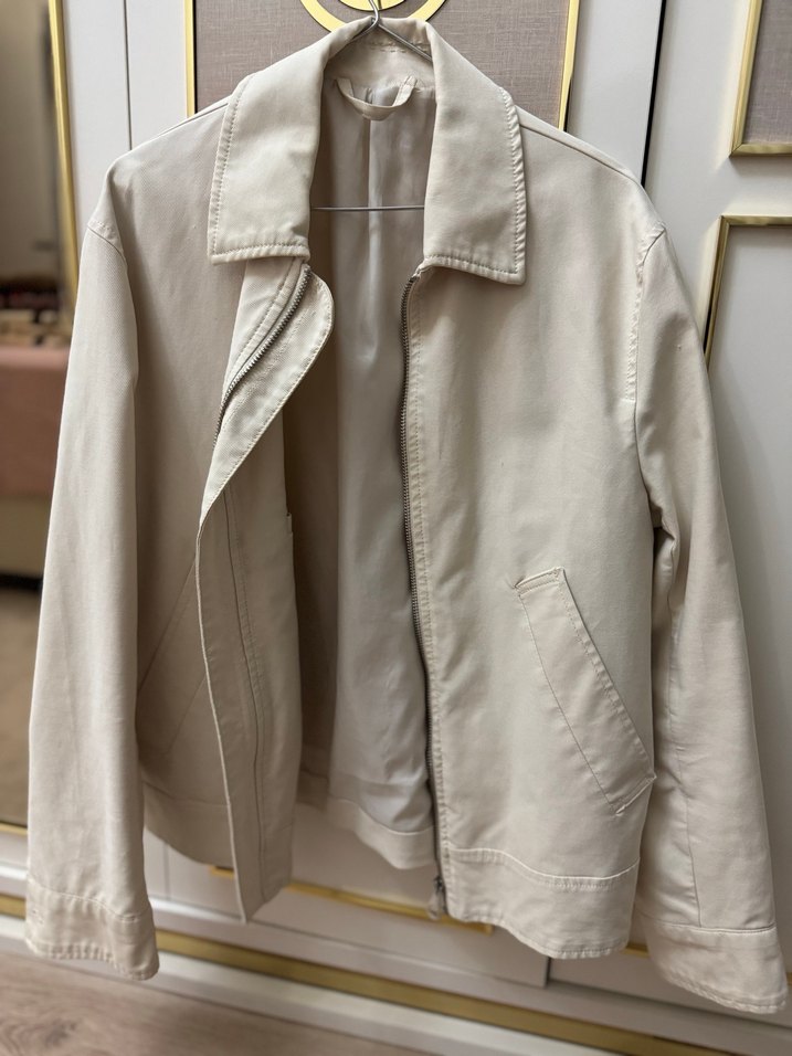 Bej keten kumaştan, regular fit ve midi boyda, uzun kollu, notched lapel yakalı erkek ceket. Sokak modasına uygun, zahmetsiz şıklık sunar.