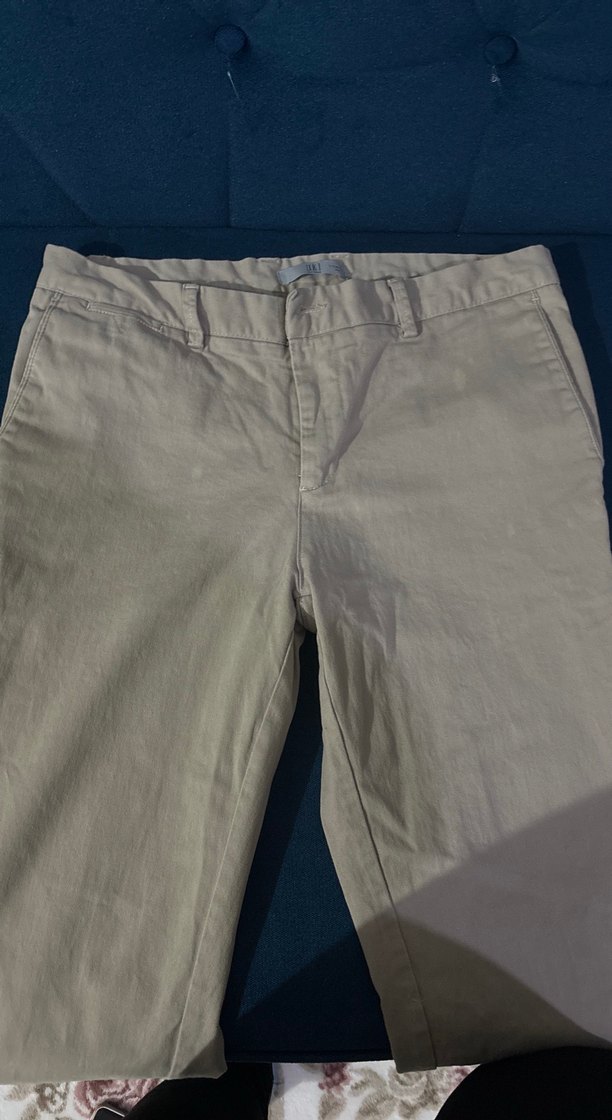 Bej keten kumaştan, normal boy ve rahat kesim Erkek pantolon. Günlük kullanım için uygun, mi normcore tarzda, zahmetsiz şıklık sağlar.(bir kaç lekesi vardır)