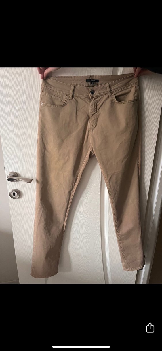 Bej renkli, keten kumaştan üretilmiş ve regular fit kesime sahip erkek pantolon. Günlük kullanım için uygun, rahat ve şık bir sokak stili sunar. Hiç kullanılmadı