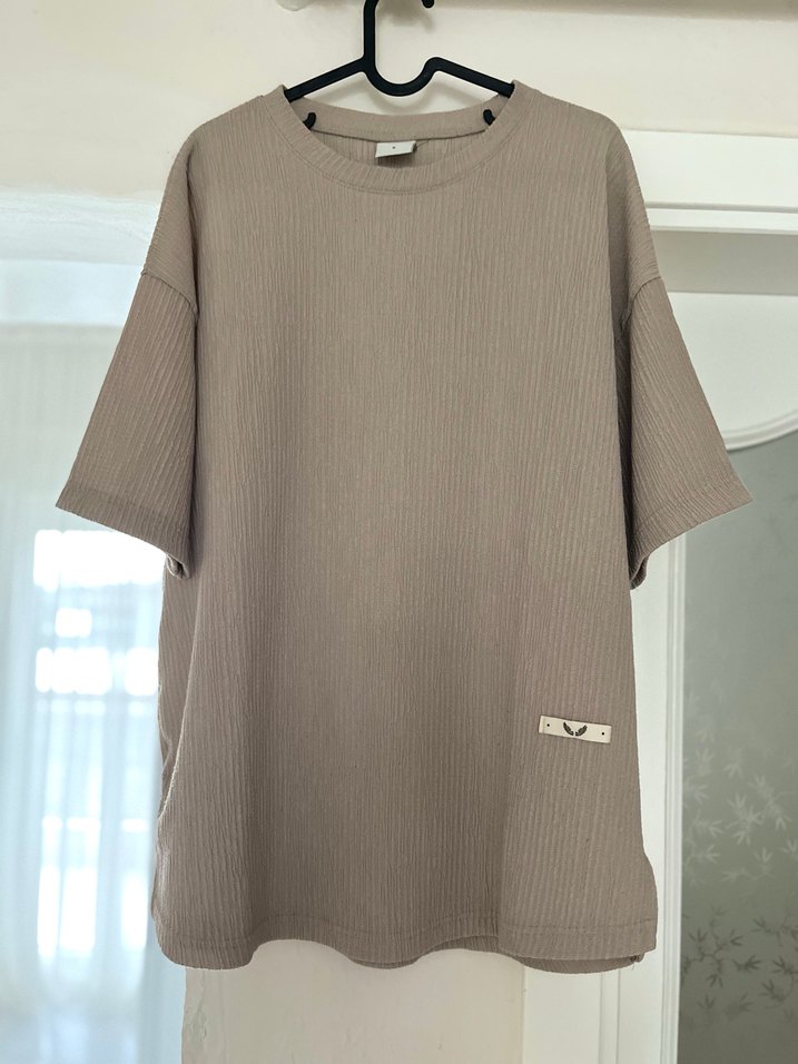 Bej renkli, keten kumaştan yapılmış, kısa kollu ve bol kesim erkek tişörtü. Sade ve desensiz tasarımıyla günlük rahatlık sunar. S/M uyumlu