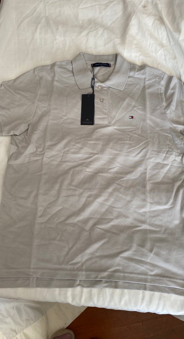 Bej renkli, kısa kollu, bol kesim erkek polo tişört. Yumuşak keten kumaştan, sade ve desensiz tasarım, günlük rahat kullanım için uygundur.
