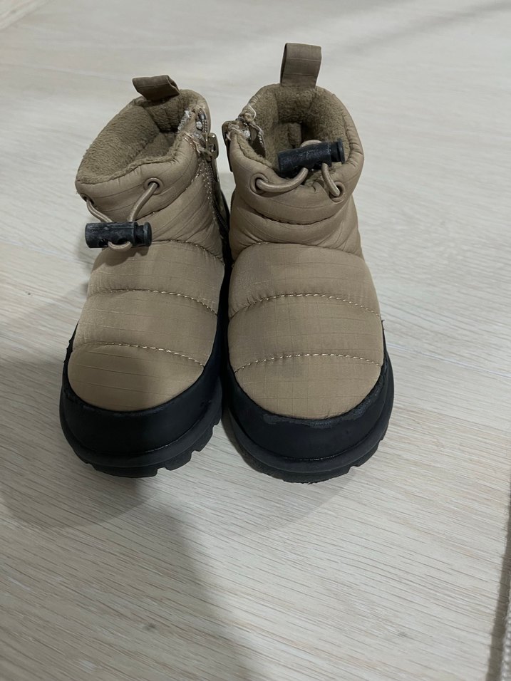 Bej renkli, düz, normcore tarzda, desensiz sade bot. Ününde hafif deformeler var ama ayakta belli olmuyor ürünün başka bir sorunu yok yenidir .