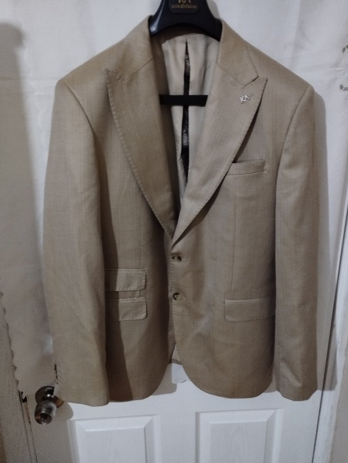 Kadir Büyükkaya marka, sıfır ve etiketli, lüks görünümlü spor/şık ceket. Etikette "1078-BUTLU KAHVE" olarak geçen, zarif bir bej/açık kahve rengindedir. Kaliteli kumaşı, %58 Yün içerir, bu sayede kış ve mevsimlik kullanım için idealdir. Modern kesimi, ister klasik ister casual kombinlerinizde stilinizi tamamlar. Ceket Detayları: Tek düğmeli, normal yaka (Notch Lapel), Beden 56. ⭐ Ürün Detayları (Etiket Bilgileri) Marka: Kadir Büyükkaya Durum: Sıfır / Etiketli (Hiç Giyilmedi) Renk: Butlu Kahve (Açık Bej/Kahve Tonları) Beden: 56 (Büyük beden arayanlar için ideal) Kumaş: %58 Yün, %39 Polyester, %3 Elastan (Yün içeriği sayesinde kaliteli ve sıcak tutar) Bakım: Yalnızca Kuru Temizleme (Dry Clean Only) #KadirBüyükkaya #YünCeket #BejCeket #AçıkKahve #SporCeket #ErkekCeket #Blazer #Ceket #SıfırEtiketli #EtiketliÜrün #YünKarışım #Luxury #BusinessCasual #Gardrops #Beden56 #BüyükBeden