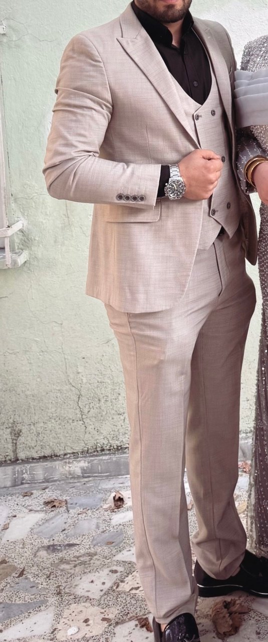 Bej Erkek Klasik Kesim Takım Elbise