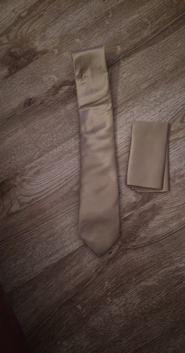 Bej renkli, düz ve sade erkek kravatı. İş ve sokak stili için uygun, yumuşak dokulu.