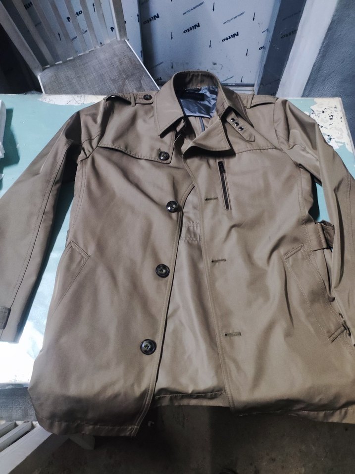 Bej renkte, düğmeli, midi boy, regular fit erkek trençkot. Sentetik kumaştan üretilmiş, çıtçıtlı yaka ve uzun kolludur. Günlük sokak stiline uygundur.