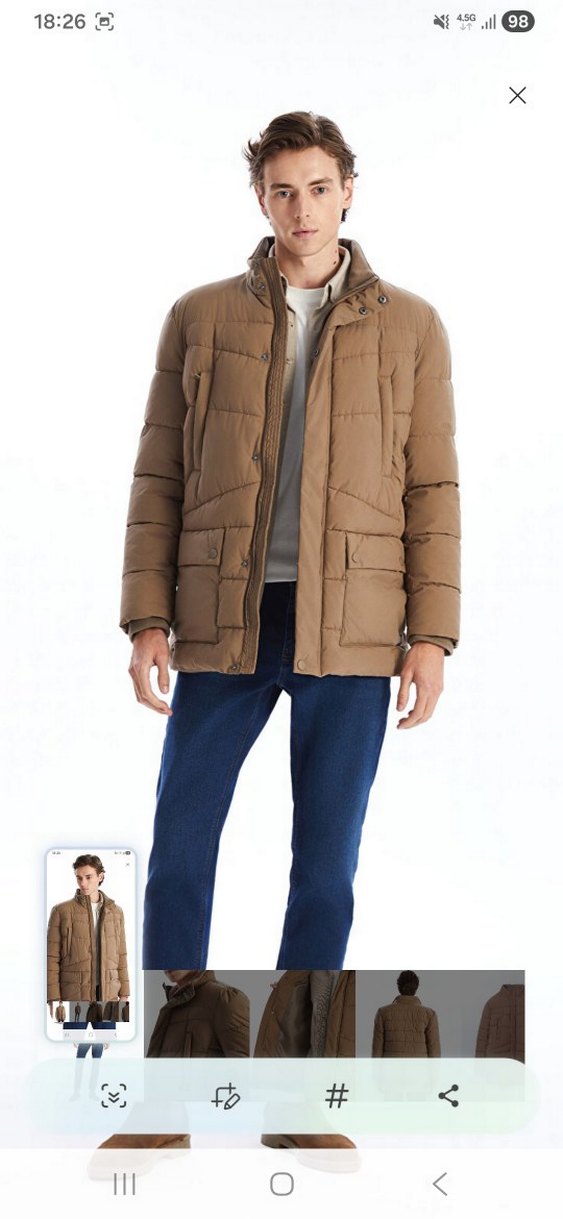 Bej renkli, fermuarlı erkek midi mont, normal kesim ve uzun kolludur. Yumuşak sentetik kumaştan yapılmış, günlük rahat sokak stili için uygundur.