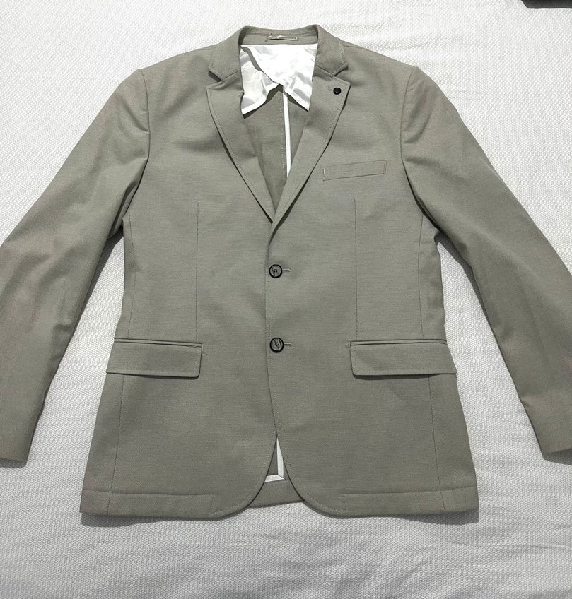 Bej renkte, düğmeli, normal kesim erkek ceket. Notch yaka ve uzun kolludur, desen içermemektedir. Çok iyi durumda
