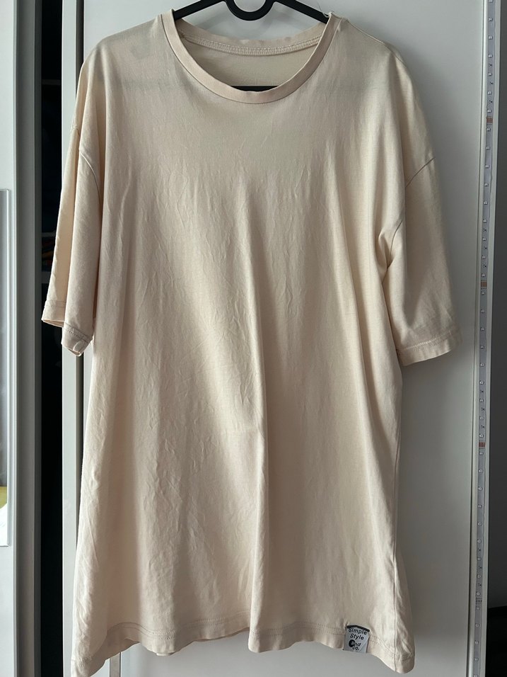 Bej renkli ,kısa kollu ve oversize kesime sahip erkek tişörtü, sade ve rahat günlük kullanım için uygundur.