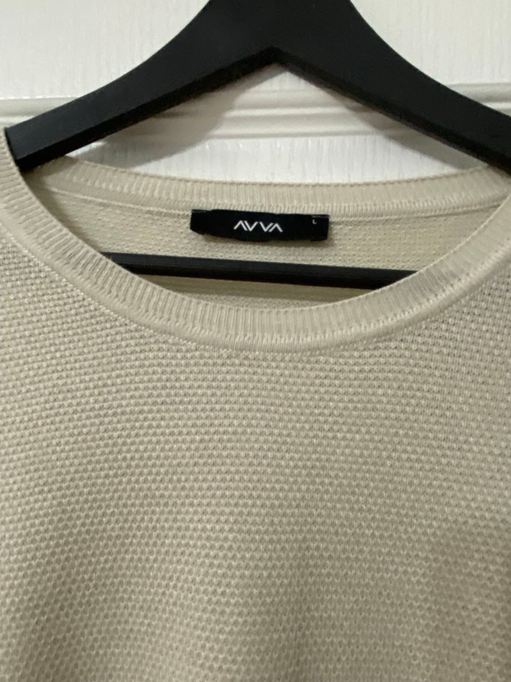 Bej renkli, pamuklu örgü kumaştan yapılmış, yuvarlak yaka ve uzun kollu kazak. Salaş kesimi ve midi boyuyla günlük kullanıma uygundur. Minimalist, sade ve streetwear tarzında.