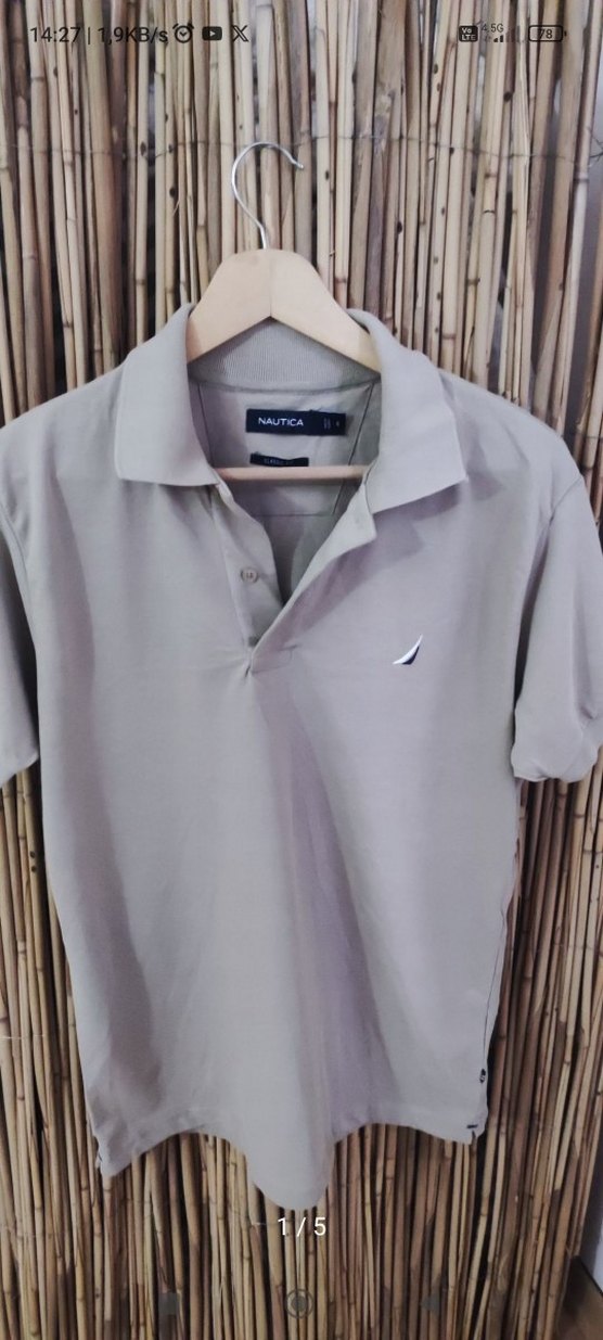 Bej renkte, kısa kollu, düğmeli yakalı erkek polo tişört. Yumuşak sentetik kumaştan, regular fit kesimde, günlük ve sokak stiline uygun. ürün kullanılmadı