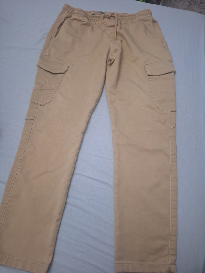 Hafif bej renkli erkek kargo pantolon, rahat kesim ve midi boy. Yumuşak sentetik kumaştan, yan cepler ve bağcıklı lastikli bel ile konforlu. Outdoor kullanıma uygun. ️boy 95 bel lastikli 44 esnek