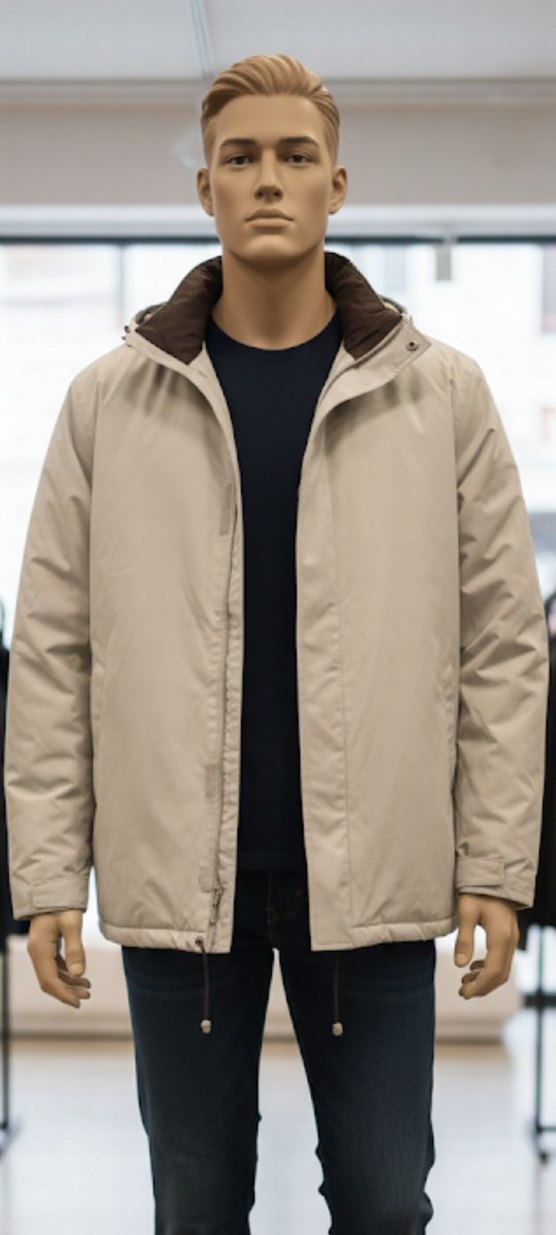 Bej erkek mont, yuvarlak yaka ve uzun kollu, regular fit kesim. Desensiz, yumuşak ve sıcak kumaştan, günlük rahat kullanıma uygun, zahmetsiz şıklık sunar.