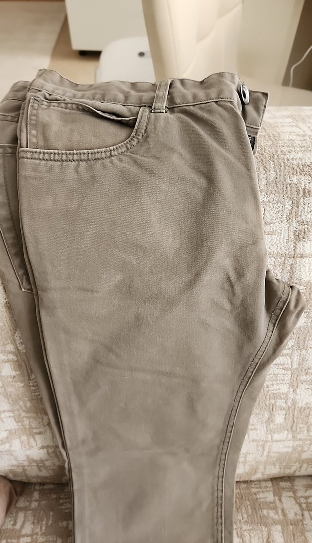 Bej keten kumaştan, beli kemerli, düz ve midi boy kadın pantolonu. Günlük kullanıma uygun, rahat kesim ve sade tarzda.
