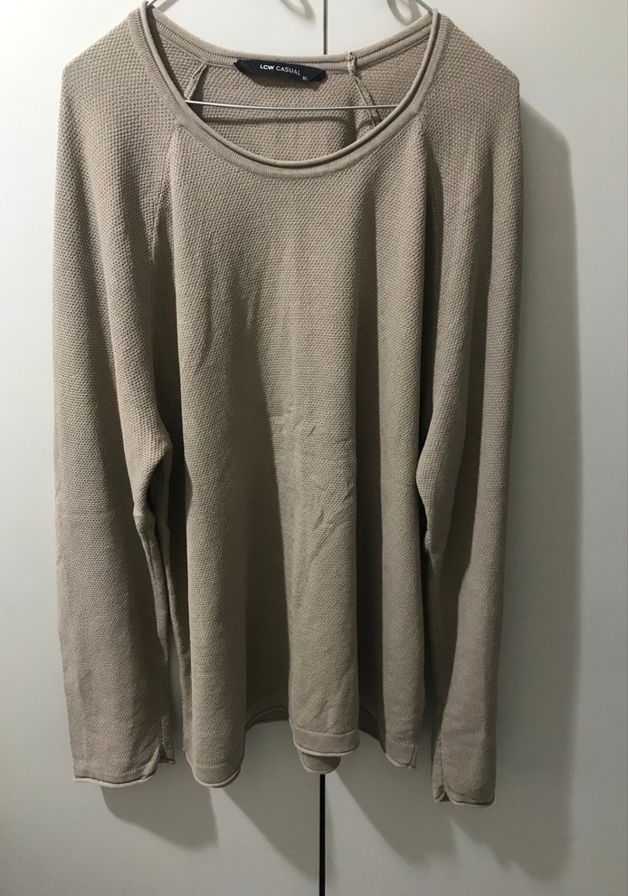 Bej renkli, yuvarlak yaka ve uzun kollu erkekkazak. Salaş ve normal boyu ile günlük kullanıma uygundur.