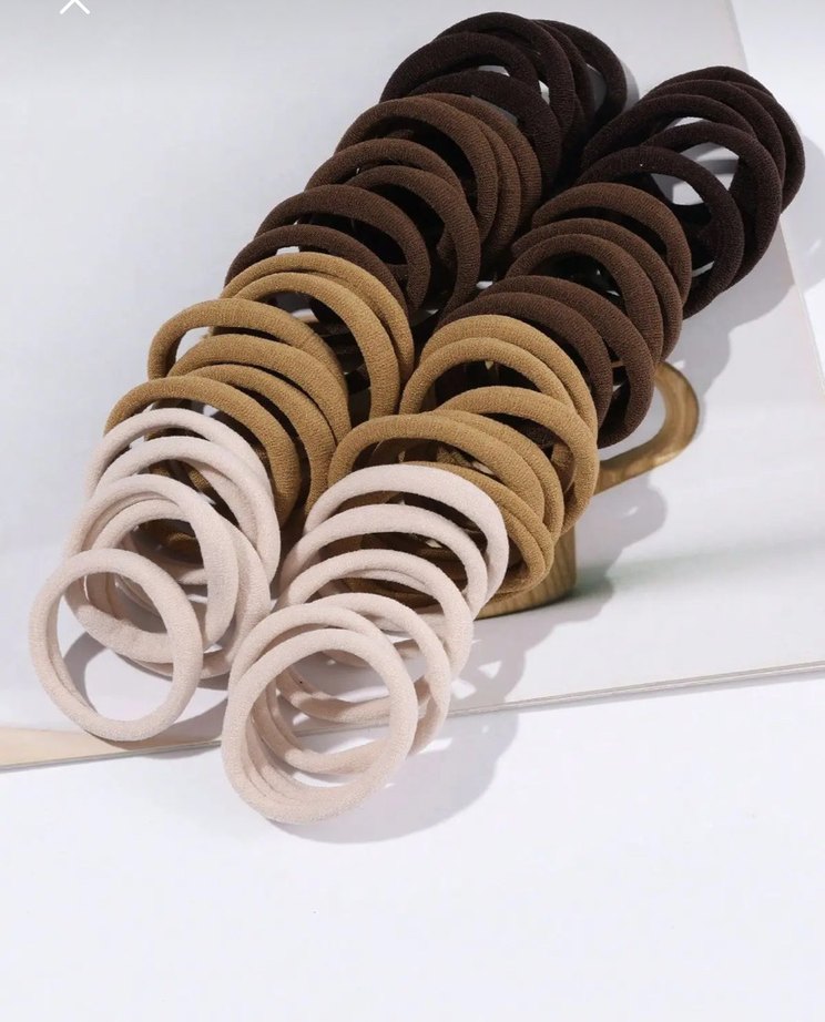 Bej ve kahverengi tonlarda, düz ve desensiz, esnek çocuk saç tokaları seti.