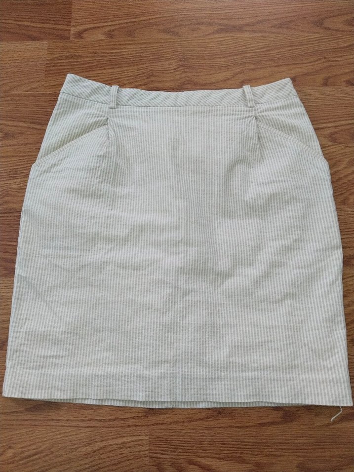 Bej renkte, keten kumaştan yapılmış, pilili ve normal kesim midi etek. Minimalist ve normcore tarzıyla ofis ortamına uygundur.