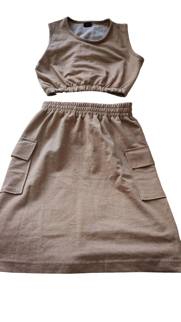 Yumuşak keten kumaştan salaş kesim bej etek, yan ceplerle sokak stiline uygun. Basit ve rahat, günlük kullanıma uygun. 1.61 boy diz kapağa geliyor etek boyu.