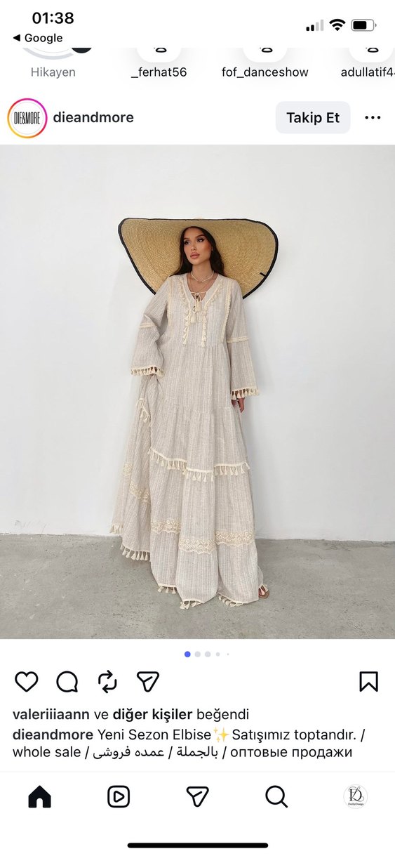 Bej Etnik Desenli Pamuklu Uzun Bohem Elbise