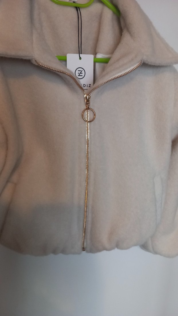 Bej renkte, fermuarlı ve yuvarlak yakalı uzun kollu çoçuk ceket. Rahat kesimi ve orta uzunluğu ile yumuşak ve sıcak kumaştan üretilmiştir.