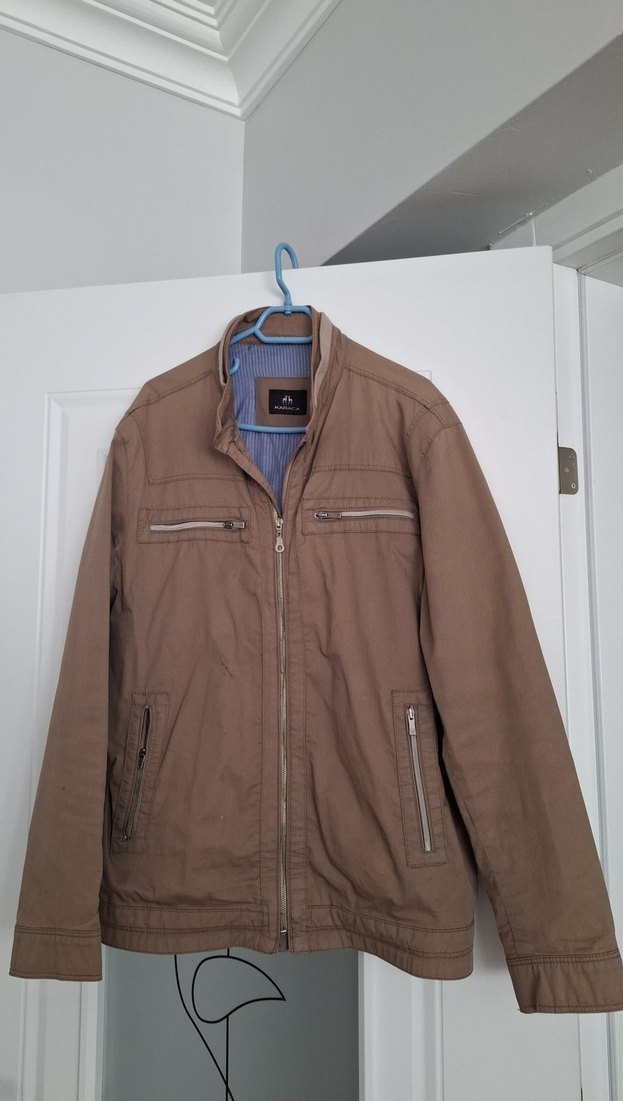 Bej renkte, fermuarlı cepleri ve ön fermuarı olan, regular fit kesim erkek ceket. Uzun kollu ve yapay kumaştan üretilmiştir, günlük kullanıma uygundur. Askeri yeşil renginde orjinal karaca yepyeni.çok az giyildi.eşim kilo aldığı için sadece birkaçkez giyildi