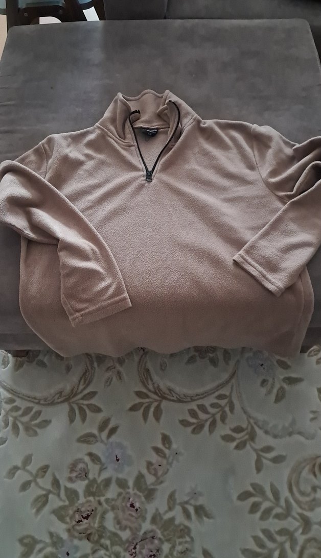 Bej renkli, uzun kollu polar sweatshirt. Yuvarlak yakalı ve fermuarlı detaylı, bol kesim ve normal boyda, rahat günlük kullanım için uygun.