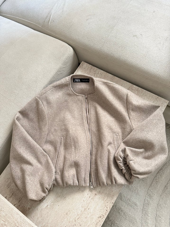 Bej Fermuarlı Kadın Bomber Ceket