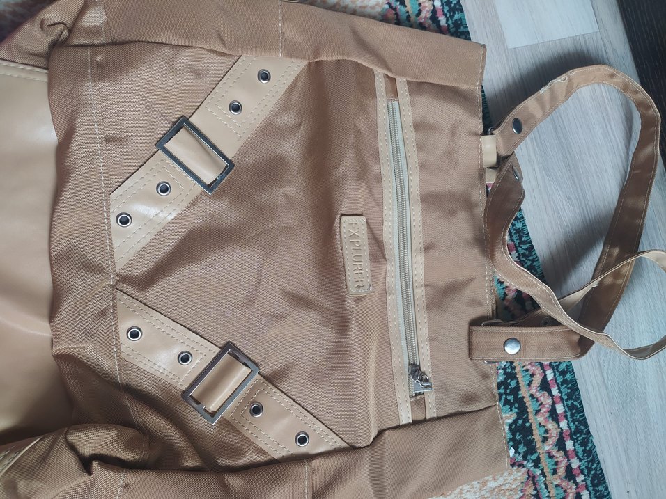 Bej renkte, fermuarlı bölmeli, sentetik kumaştan yapılmış kadın çantası, sokak stili ve günlük kullanım için uygundur.