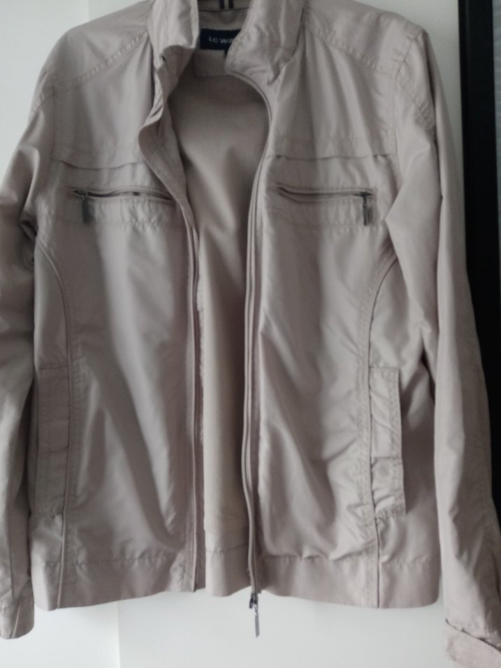 Düz bej renkli, fermuarlı ve uzun kollu, vücuda oturan kadın ceketi. Dış mekanda rahat kullanım için uygun, notalı yaka tasarımlı.kapşonu car yakanın içinde gizlenebiliyor