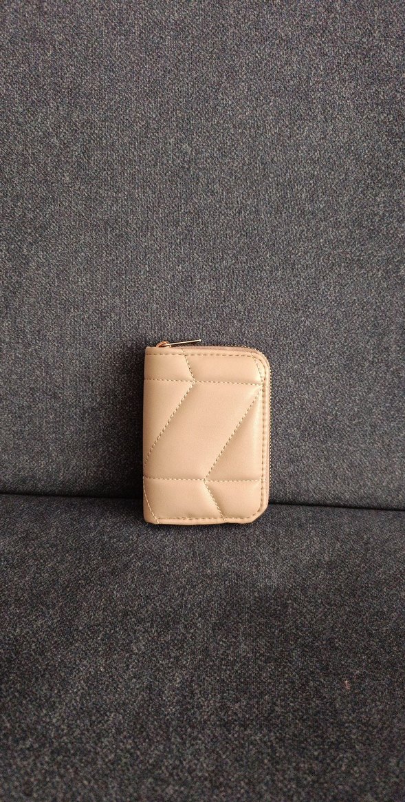 Bej renkte, fermuarlı kapanışa sahip kadın deri cüzdan. Minimalist tasarımıyla günlük ve sokak modasına uygun.