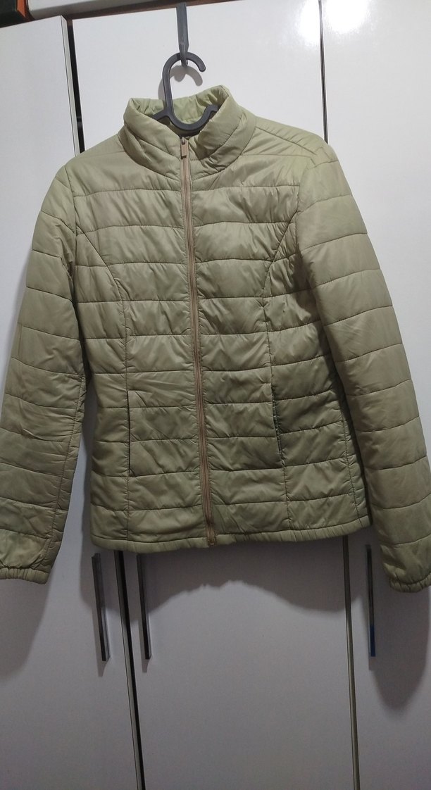 Bej renkte, fermuarlı ve yakası kesik detaylı kadın montudur. Yumuşak sentetik kumaştan yapılmış, normal kesim ve uzun kolludur. Günlük ve sokak stili için uygundur.