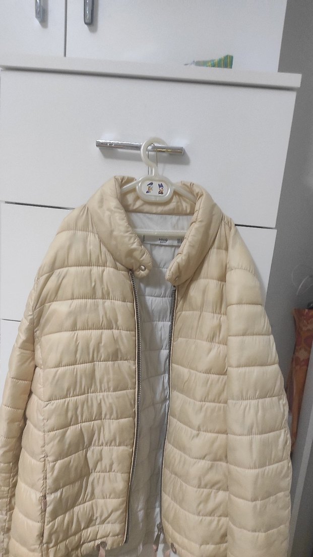 Bej renkli, fermuarlı ve kısa boyda kadın kışlık mont. Keten kumaştan olup, dar kesim ve bisiklet yaka detayına sahiptir. Minimalist tarzda gündelik kullanım için uygundur.