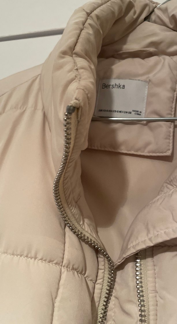 Bershka'dan bej renkli, fermuarlı, yakalı, midi boy kadın kışlık mont. Yumuşak sentetik kumaştan, dar kesim ve askılı kollu, rahat sokak stili için ideal. İçi kürklüdür çok az kullanıldı hiçbir kusuru yoktur