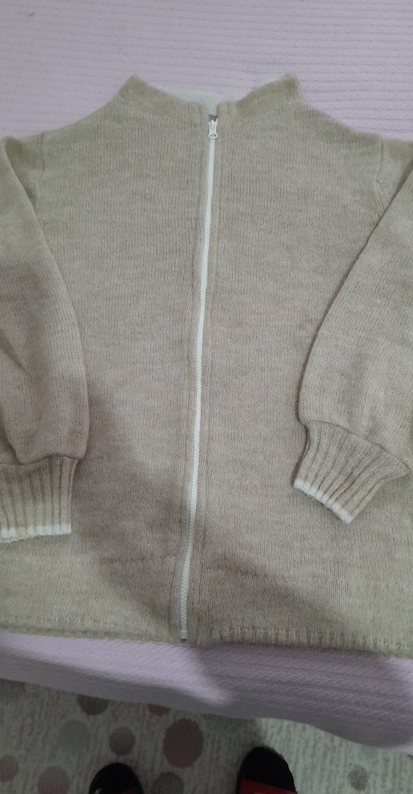 Bej renkli, fermuarlı, uzun kollu, yuvarlak yakalı kadın triko kazak. Rahat kesimi ve sade tasarımıyla günlük kullanım için uygundur.