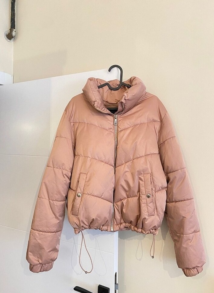 Yumuşak ve sıcak kumaştan yapılmış, fermuarlı bej mont. Yüksek yakalı, normal midi boyda ve fitted kesimdir. Rahat günlük kullanım için uygundur.