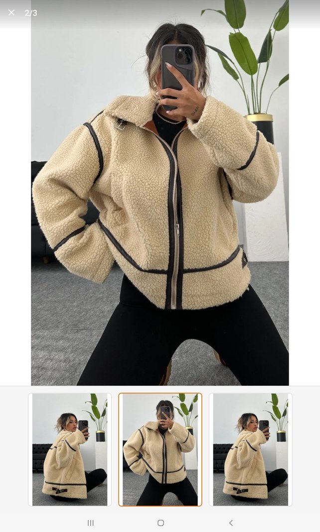 Bej renkli, bol kesim ve uzun kollu, suni kürk detaylı fermuarlı kadin cekettir. Crew yaka ve midi boyda, rahat ve sıcak tutar.Bi kere kuru yıkamaya verdigim için rengi hafif grileşti