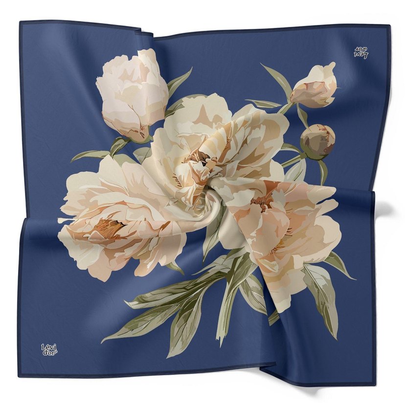 Bej renkli, pastel çiçek desenli ve fırfırlı detaylara sahip ipek fular, bohem Paris tarzında.