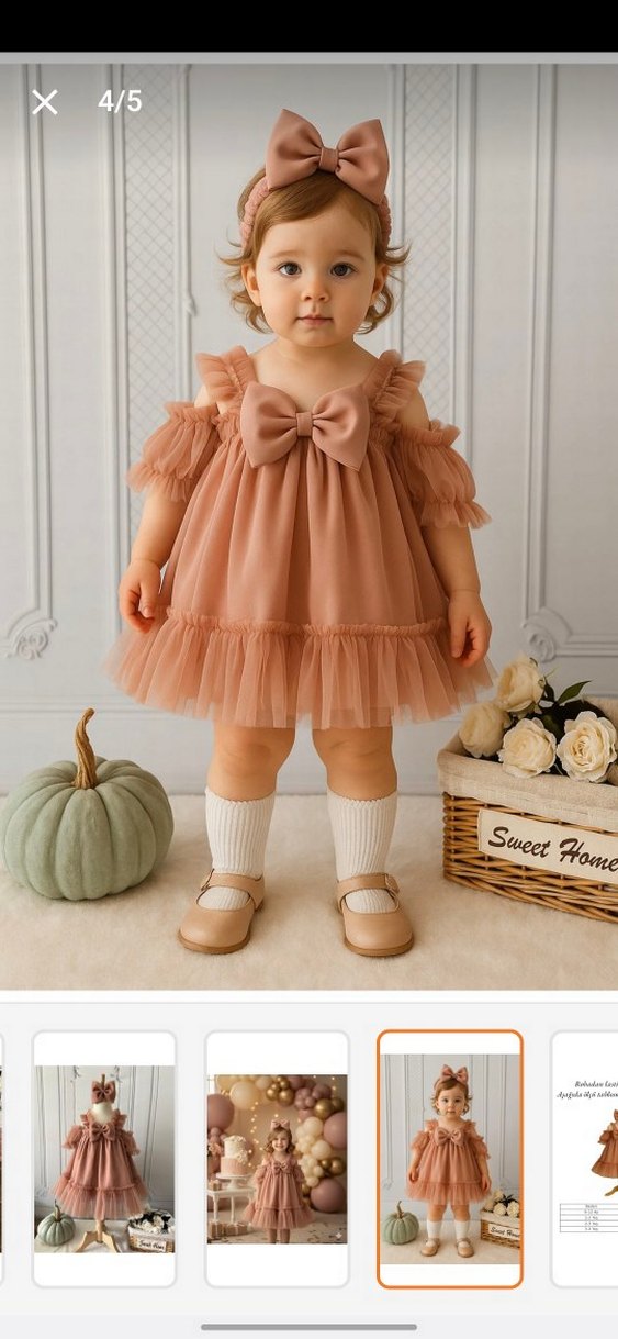 Bej renkli, kayışlı ve straplez tasarımlı bu elbise, fırfır detayları ve büyük fiyonk ile klasik bohem şıklığı yansıtıyor. Rahat kesim ve yumuşak sentetik kumaş kullanılmıştır.