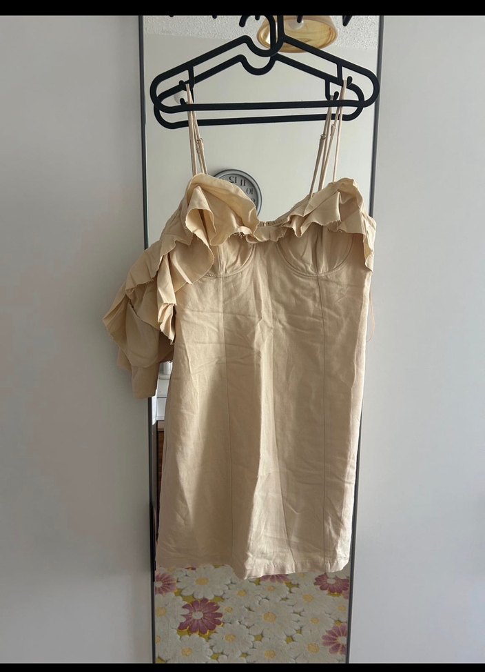 Bej Fırfırlı Mango L Elbise