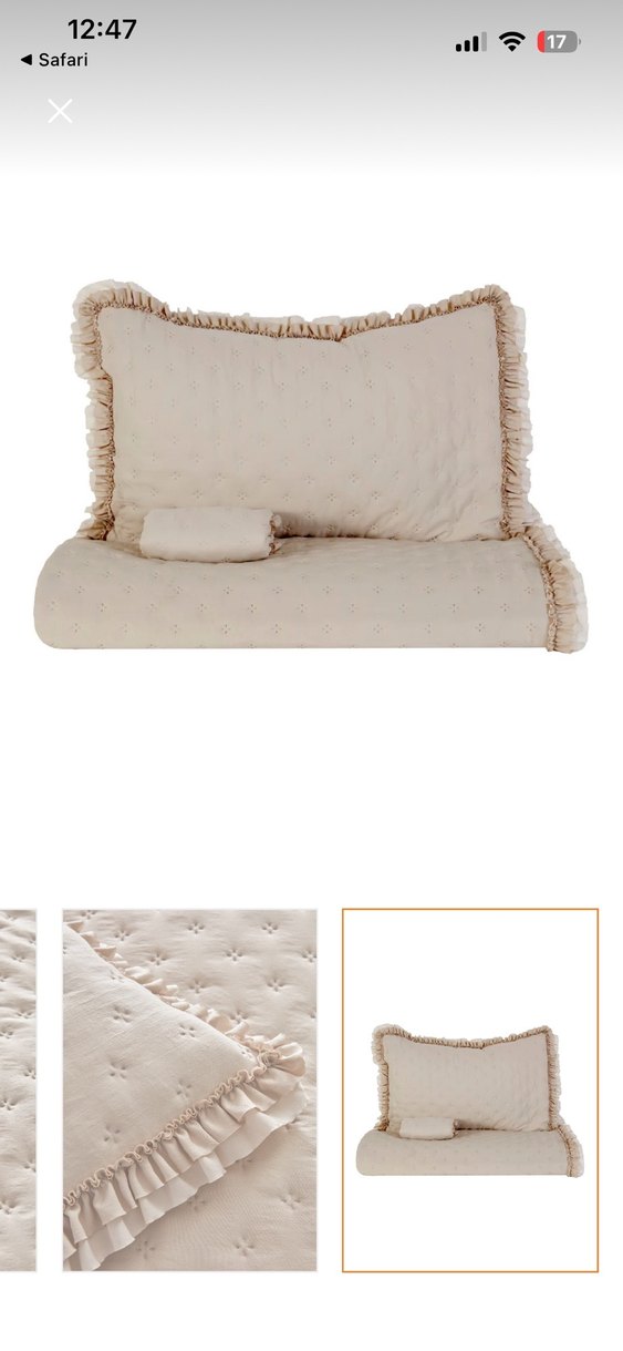 Bej renkli, fırfırlı kenarlara sahip nevresim ve yastık kılıfı takımı. Yumuşak dokulu, küçük nokta detaylı sade bir tasarıma sahiptir. ️