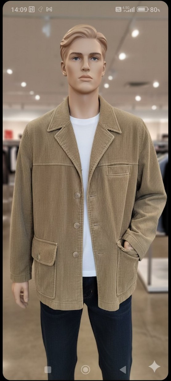 Bej fitilli kadife Düğmeli Erkek Ceket