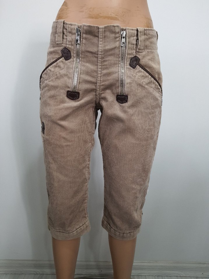 Kemerli ve fermuarlı detaylara sahip, bej fitili kadife kısa ve dar kesim kadın pantolon, günlük sokak stiline uygundur. yurtdışından alındı. kusursuz. Bel 38 cm. Boy 64 cm. #golf #kapri #bermuda #kışlık #pantolon