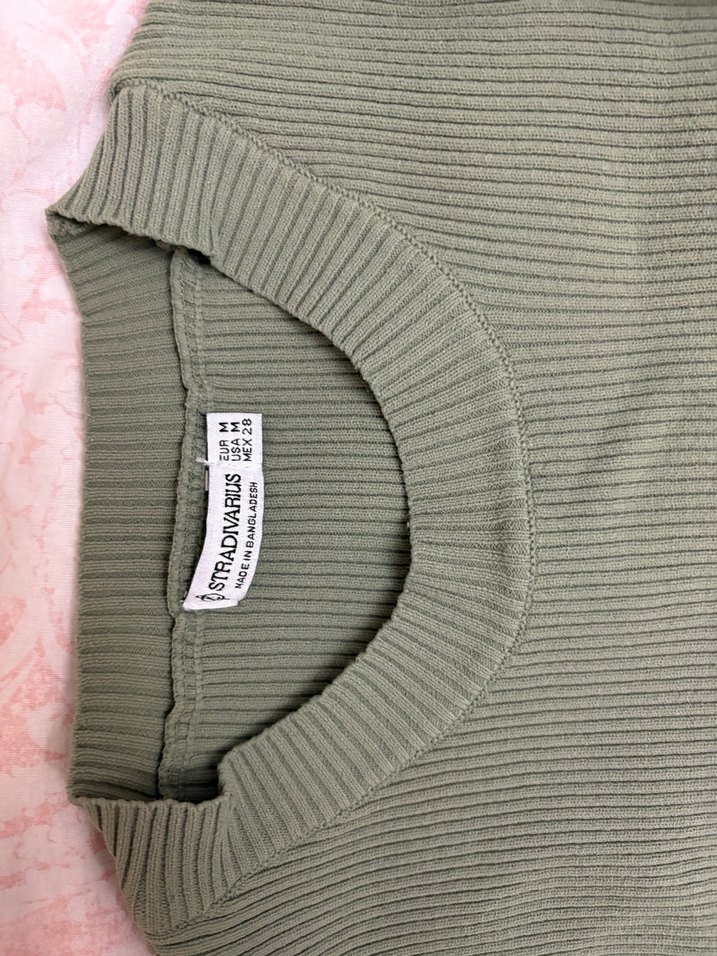 yeşil renkte, fit kesim, uzun kollu ve yuvarlak yaka kadın triko kazak, rahat ve gündelik kullanıma uygun.