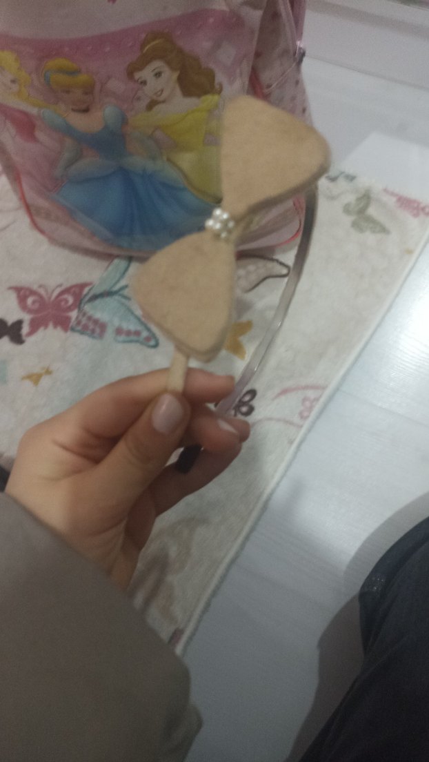 Bej renkte, baskılı detaylı ve inci süslemeli bohem tarzda çocuk saç bandı, şık ve trend bir görünüm sağlar.