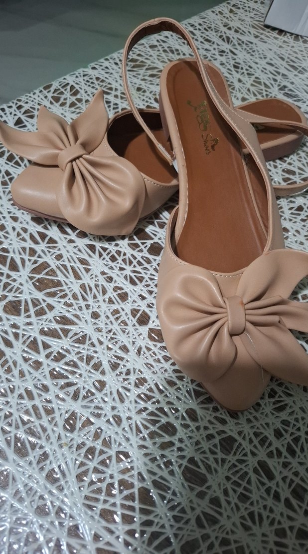 Bej renkte, yumuşak kauçuk malzemeden yapılmış, fiyonk detaylı topuklu babetler. Klasik tarz ve düğünler için uygundur.