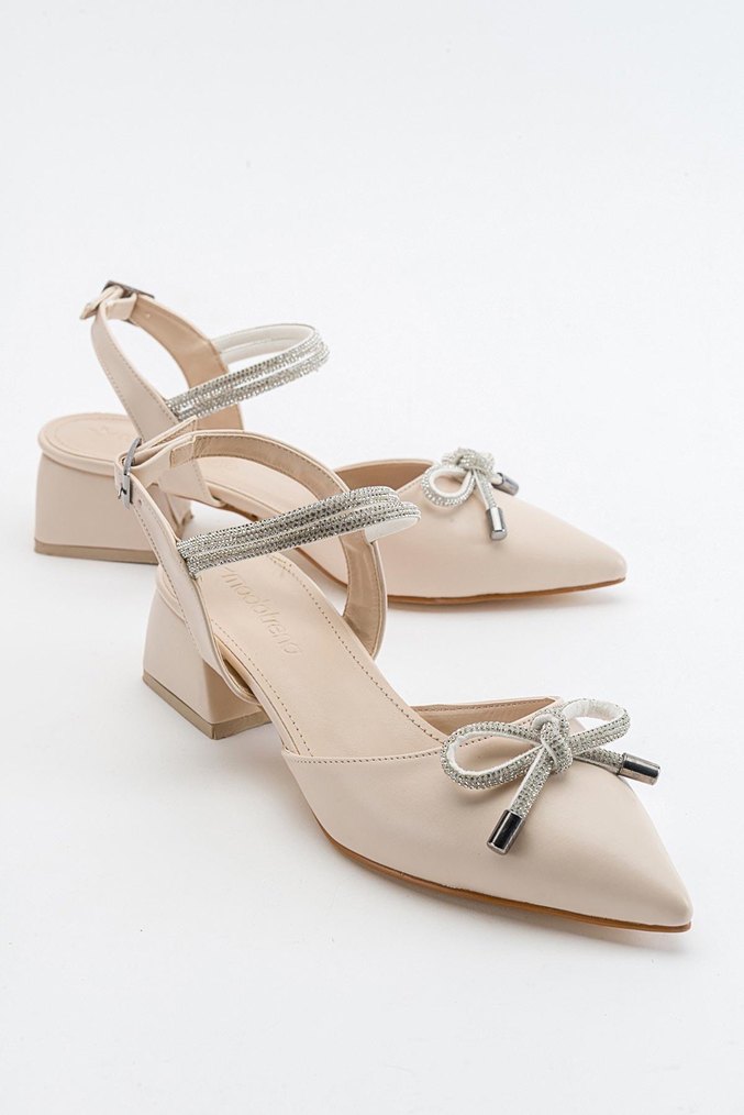 Bej Fiyonklu Modern Klasik Topuklu Kadın Ayakkabı